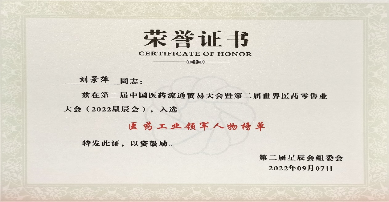 本次星辰会期间,澳门威尼斯人斩获颇丰,获得多项行业奖项及荣誉。在开幕式上,刘景萍董事长荣获“医药工业领军人物”称号。