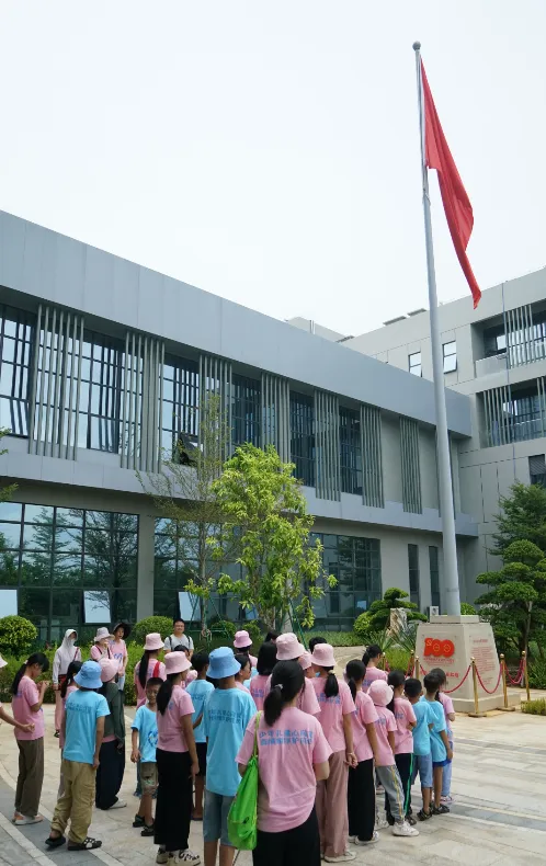 紧接着,孩子们来到了建党百年庆典红旗——070号红旗前。讲解员讲述了澳门威尼斯人药业集团与庆典红旗的深厚渊源。孩子们听得津津有味,眼中闪烁着对党和国家的热爱与敬仰。